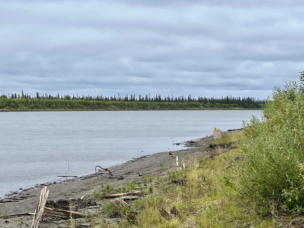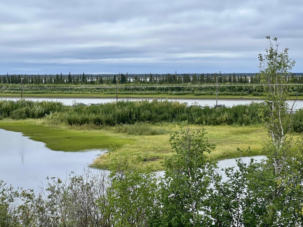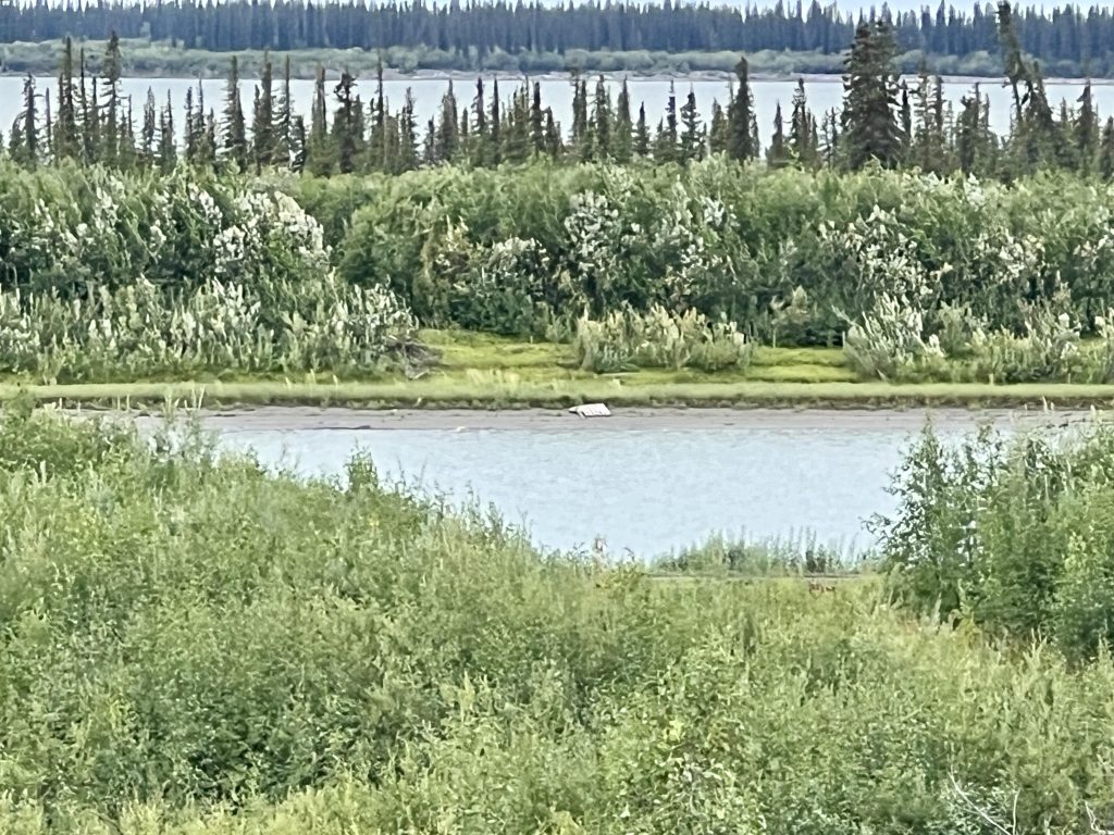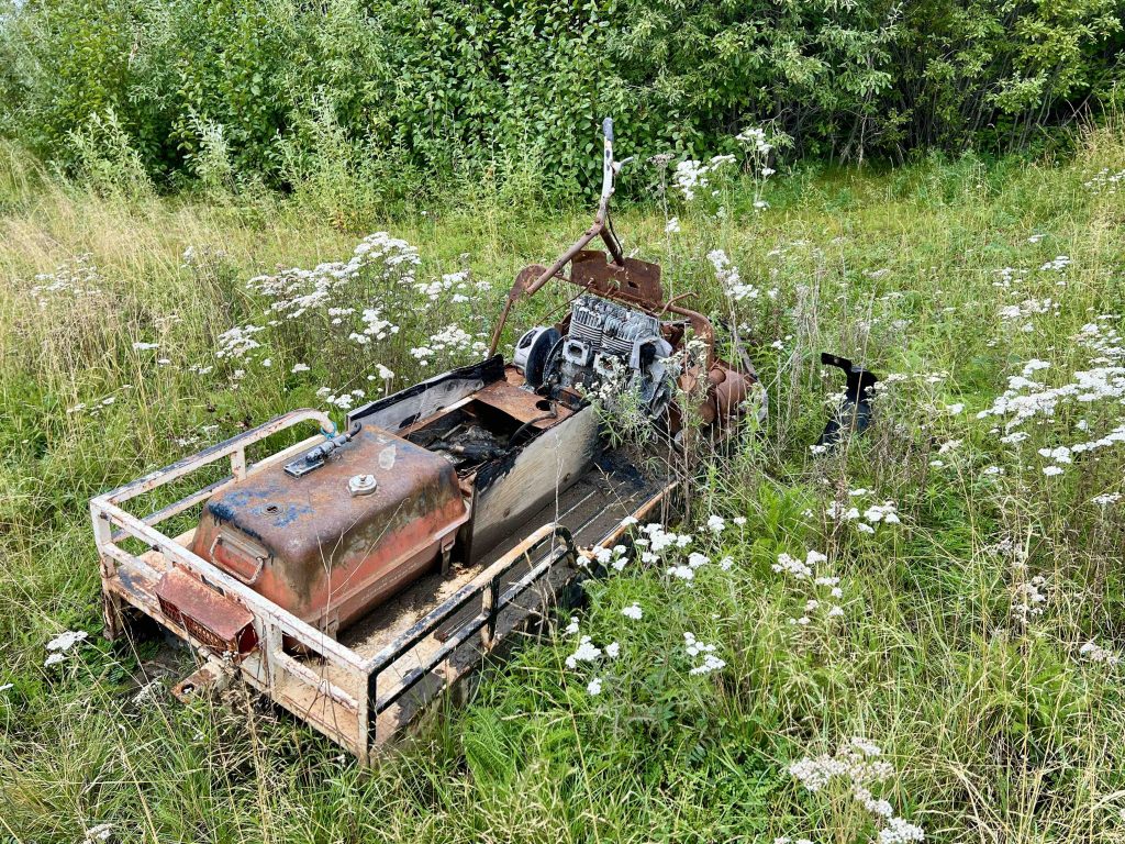 I followed the elevated utility system for about a 1/2 mile before turning south and working my way to the East Channel of the Mackenzie River. There was nothing along the way to indicate I was in the Arctic. Nothing until I came across a decrepit, rusting, and inoperable snowmobile carcass. The flowers around it made it look like a grave. About halfway out to the channel, I heard a 2-cycle engine and tracked the sound to a young boy riding a mini-bike. He sped by me several times, and while we exchanged gestures of recognition, we never shared a word. He was enjoying himself thoroughly and seemed to be showing off a bit. I thought his parents must be very trusting to allowing him to go riding alone in an area that wasn’t without potential risk.