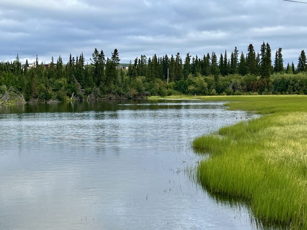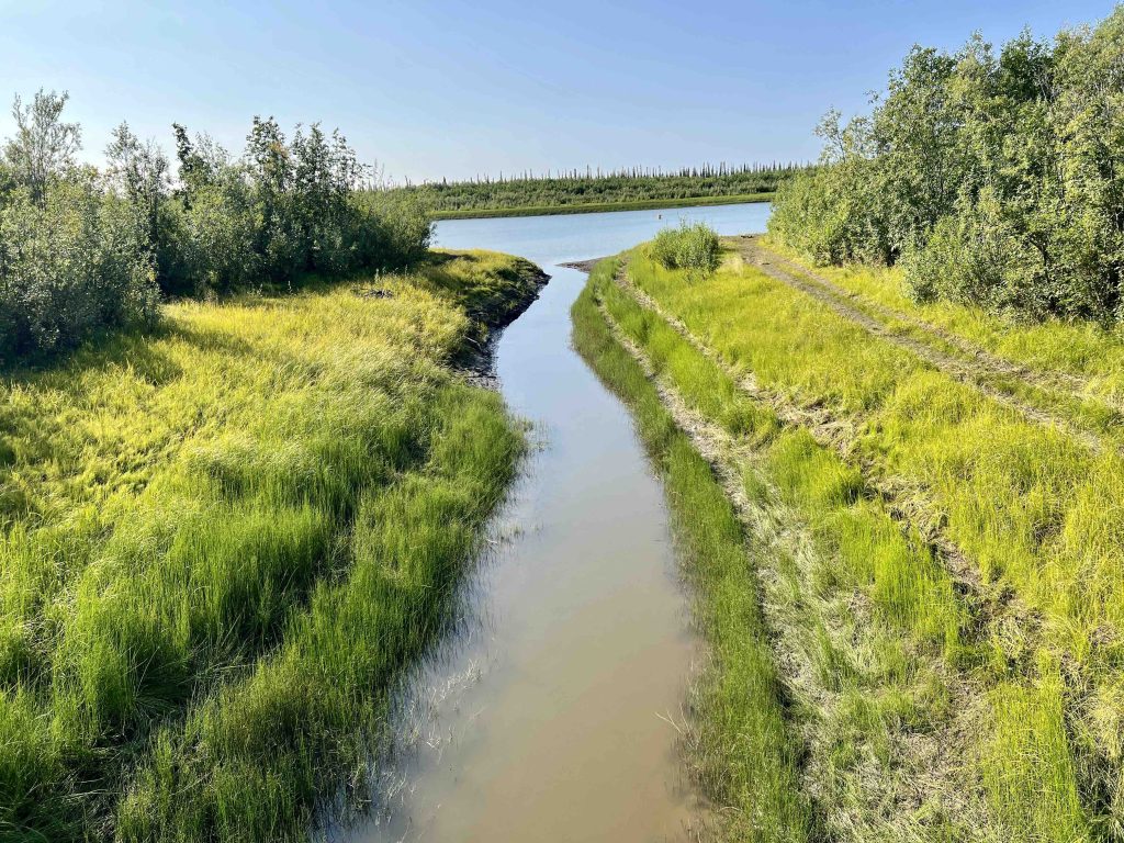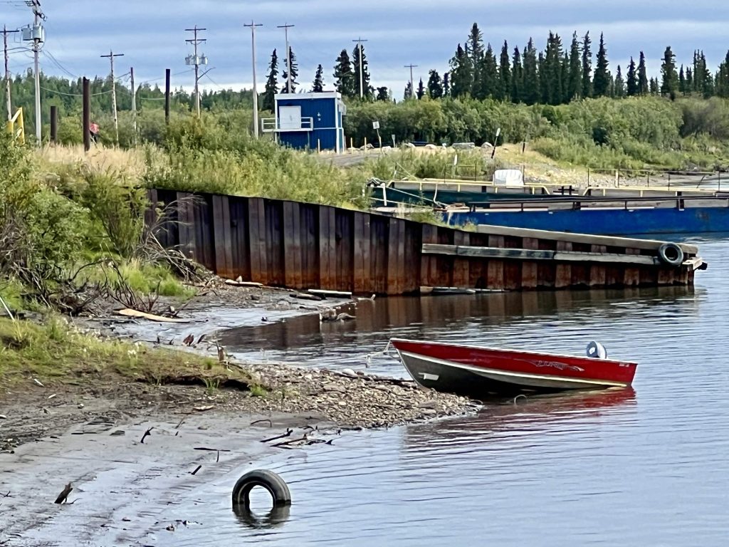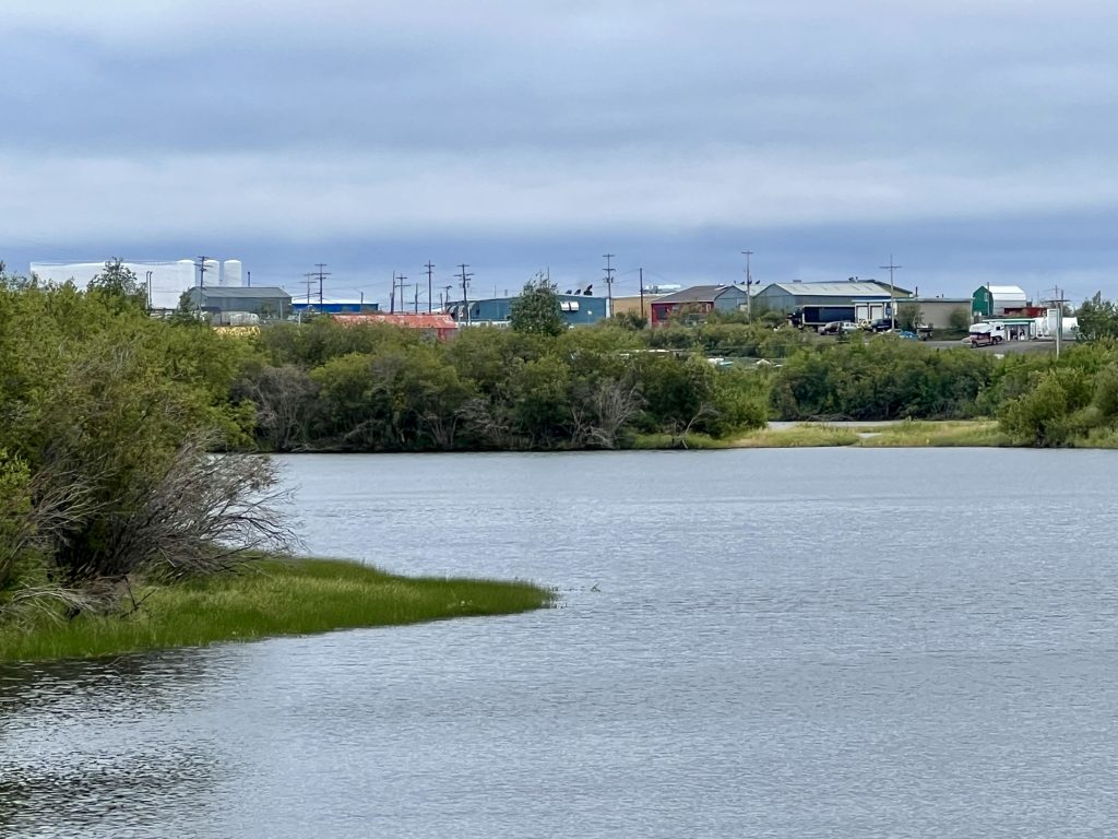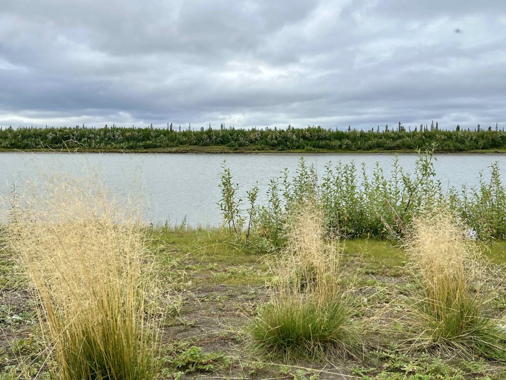I followed the elevated utility system for about a 1/2 mile before turning south and working my way to the East Channel of the Mackenzie River. There was nothing along the way to indicate I was in the Arctic. Nothing until I came across a decrepit, rusting, and inoperable snowmobile carcass. The flowers around it made it look like a grave. About halfway out to the channel, I heard a 2-cycle engine and tracked the sound to a young boy riding a mini-bike. He sped by me several times, and while we exchanged gestures of recognition, we never shared a word. He was enjoying himself thoroughly and seemed to be showing off a bit. I thought his parents must be very trusting to allowing him to go riding alone in an area that wasn’t without potential risk.