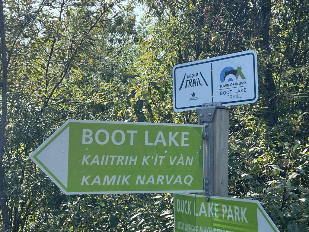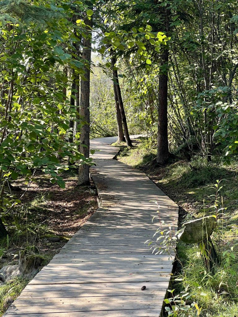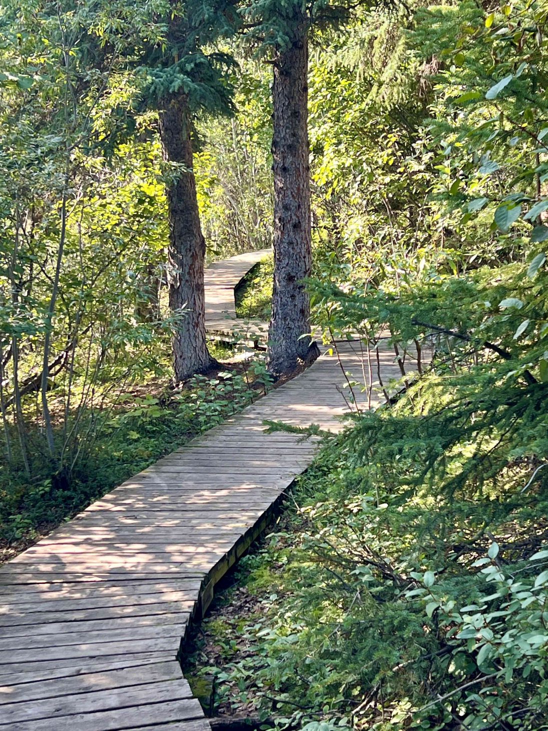 The second hike was shown on AllTrails; however, I added considerable length to it by hiking to the trailhead and trekking through town on my way back to our campground. The trail was called Boot Lake, and indeed circled that lake at the south end of town. An interpretive display posted at the trailhead described the TCT (Trans Canada Trail), which intersected the Boot Lake Trail along the eastern side of the loop. I’d heard of the TCT previously and even hopped on a portion of it during our travels across Canada, but this was my first opportunity to more fully understand its extent.
