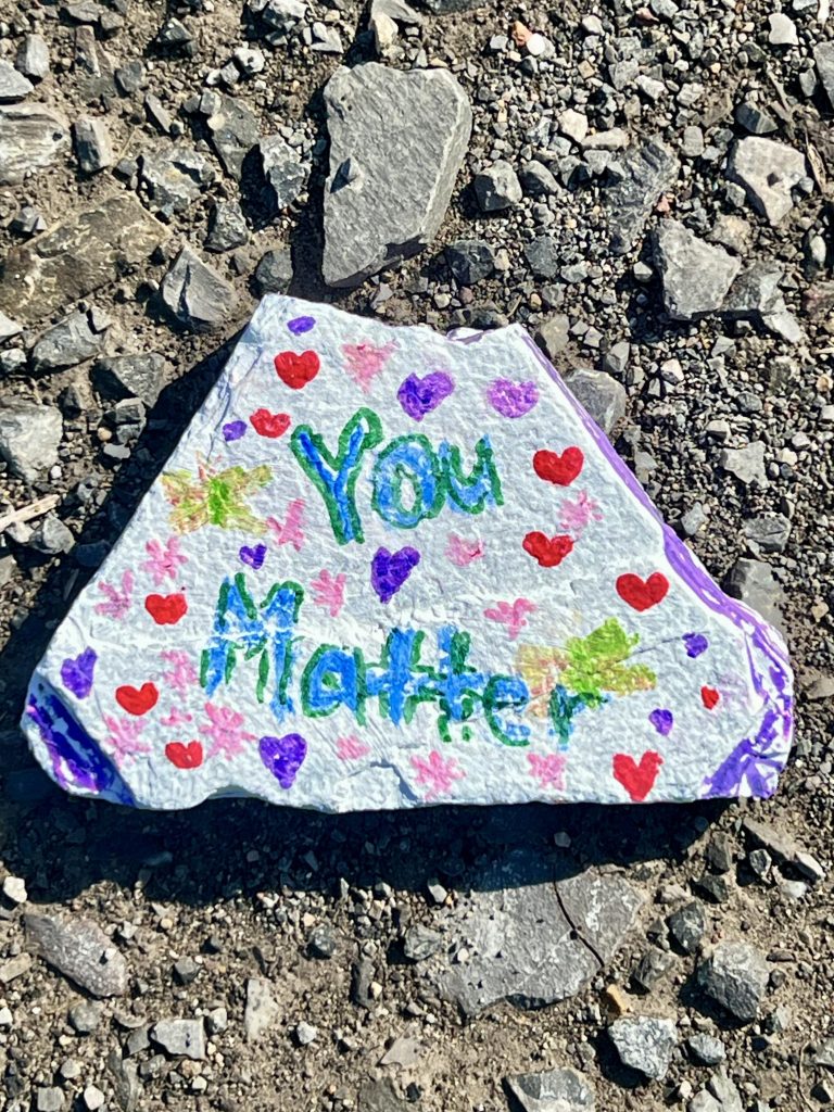 To end this on a much more positive note, I walked past the Midnight Sun Complex (recreation center) on the corner of Bumpas St. and Gwich’in Rd. As I approached the corner, I noticed the left side of both roads were lined with lots of painted rocks. We knew the Inuvialuit took pride in supporting, educating, and developing their youth, and these rocks were the result of a youth craft event hosted by the Complex. These youngsters will never know how their designs uplifted my spirits.