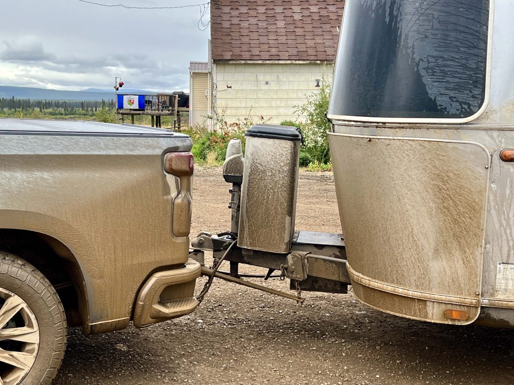Our campground was only 1.1 miles passed the river, but we had been told that the gas station and convenience store at the north end of Fort McPherson (population 647) was a must stop. We drove the additional 8 miles (one-way) to the gas station/convenience store. We topped off our tank and bought an easy-to-fix dinner before returning to Nataiinlail Territory Park Campground, registering, and setting up for the night. Sid and Arthur had surpassed a level of filth beyond our wildest imagination. There were no facilities yet for getting them clean, yet I had to wash off our tail lights and running lights to ensure we could be seen by others.