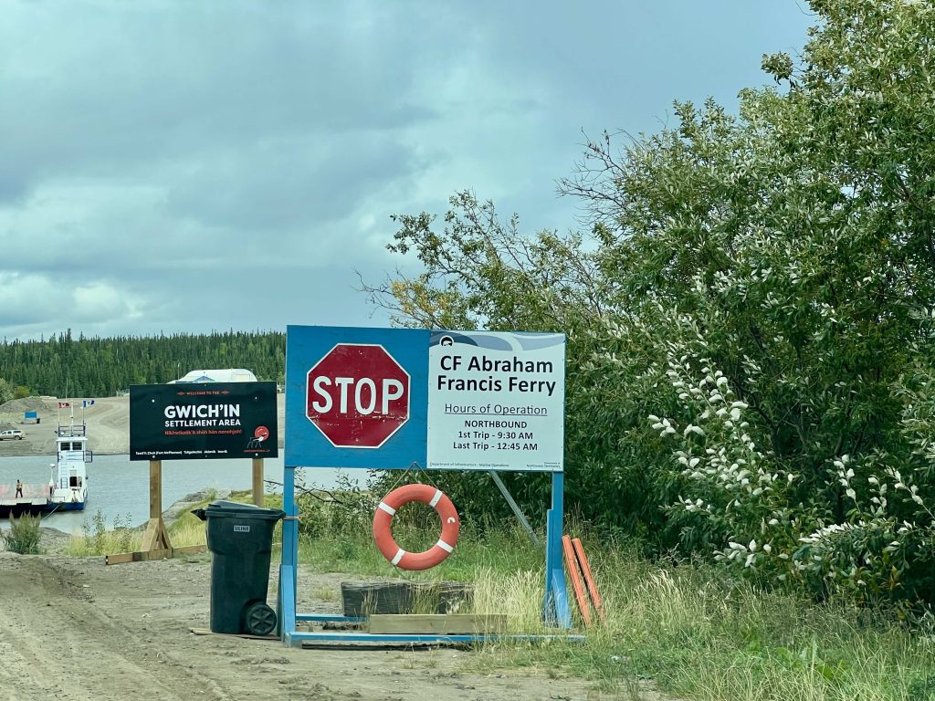 The ferry crossing at the Peel River was our third since entering Dawson City. Locals referred to it as “Eight Mile,” because it was located 8 miles south of Fort McPherson. All the ferries we encountered in Canada were free, passage being paid by provincial governments. Ferry crossings were a potential crap shoot due to changing weather and river level conditions, but The Milepost provided hours of operation and a toll-free phone number for checking operations in advance. This was extremely helpful. With a quick call, we could check whether we’d have problems or not, and if not, proceed with confidence. If yes, then there was time to make alternate plans. We had run into others whom had to wait as long as 6 hours before crossing operations resumed.