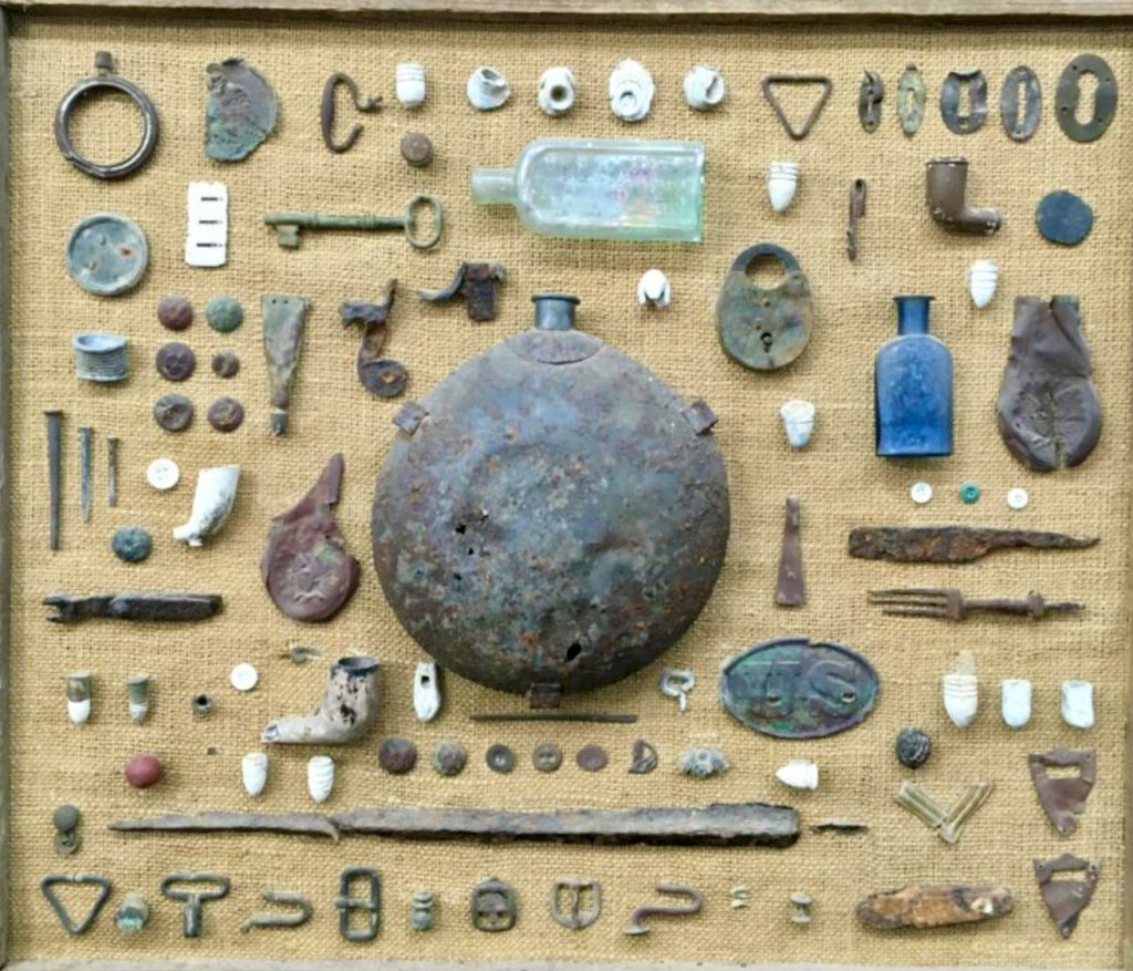 A display representing the types of period artifacts purchased for or donated to the museum.