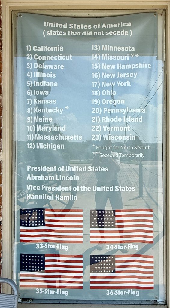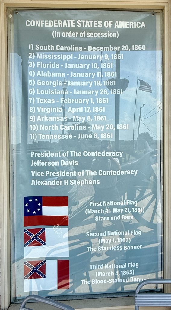 Before entering the Museum, displays on the outside of the building provided interesting data and statistics on the two nations at war, the States comprising each, and the “Siege of Vicksburg,” the critical Union victory that ultimately led to the end of the war.