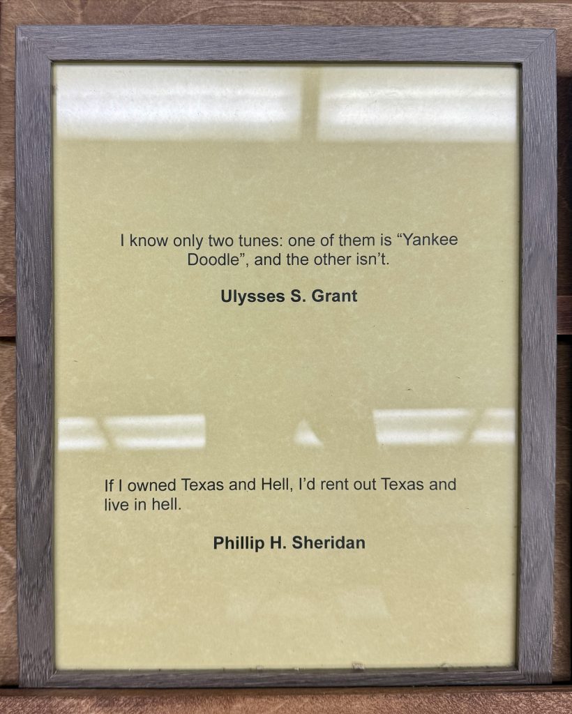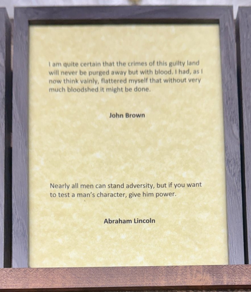 The second stop was a display of quotes made by prominent representatives from each side. While I read them all, I only took pictures of a few from the ones representing the Union. Those from the Confederacy again spoke to the strong belief in and need for slavery, a cause for which, they were clearly willing to die. While some were humorous, most offered opinions from both sides of why the war was undeniably necessary.
