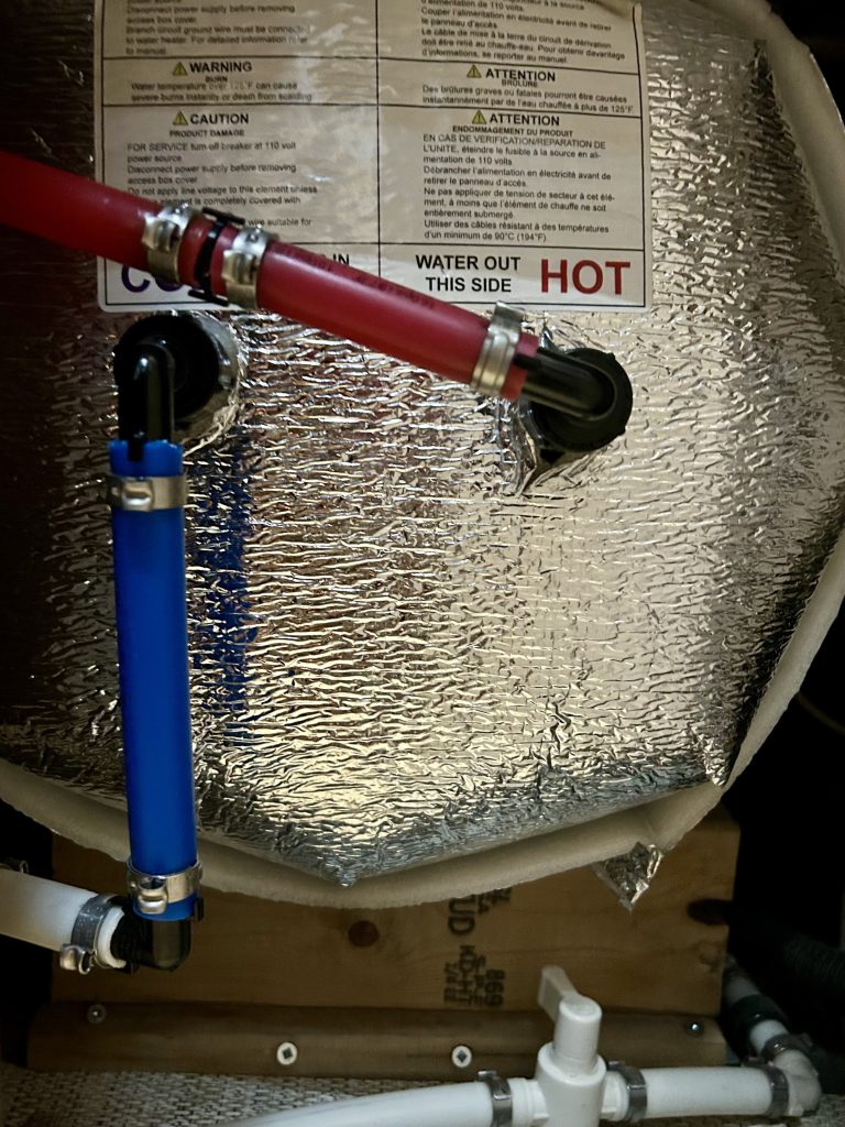 Fast forward to Sep 2025. Over the ensuing 14 months, MFI cogitated over how to best replumb the connections, slowly assembled the parts she believed it would take, and waited for when there was sufficient time to do the work. She recently tackled the job and was finished in about half an hour. Would have been quicker, but one of the Home Depot elbow fittings leaked, because the manufacturer’s integral washer was missing for unknown reasons. Fortunately, she had more elbows with washers intact, and the final fix was completed in short order.