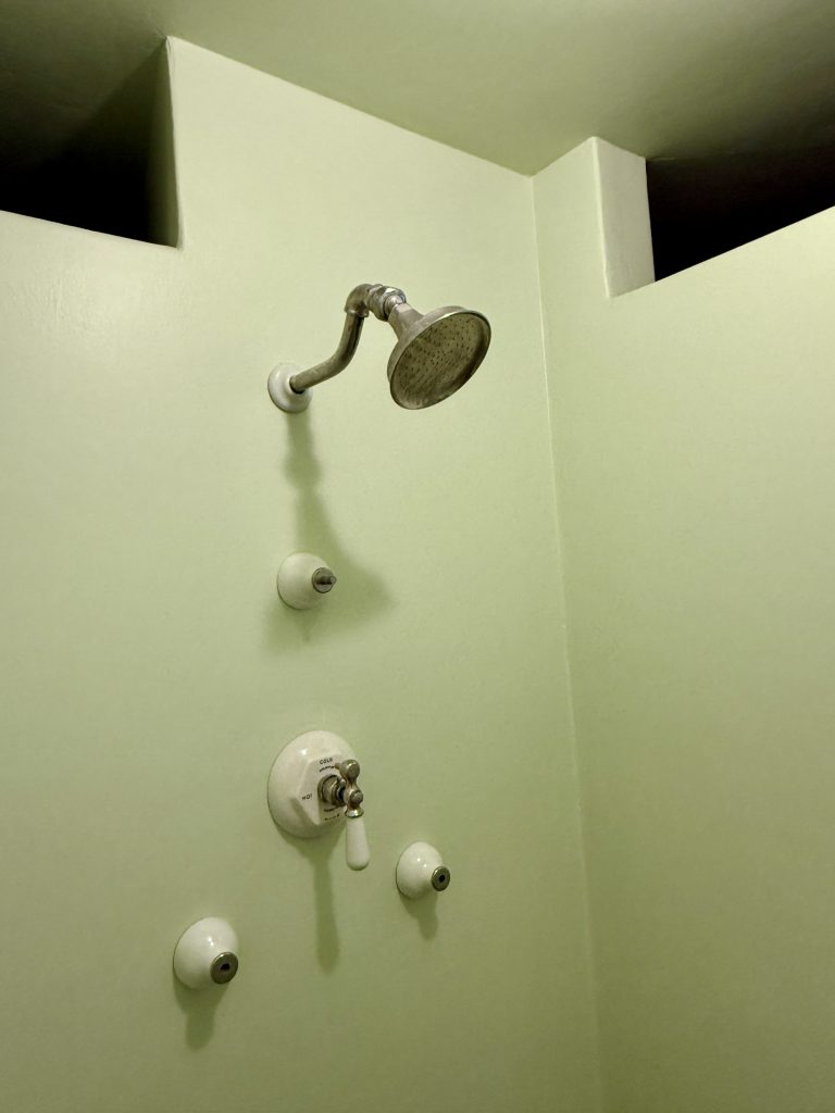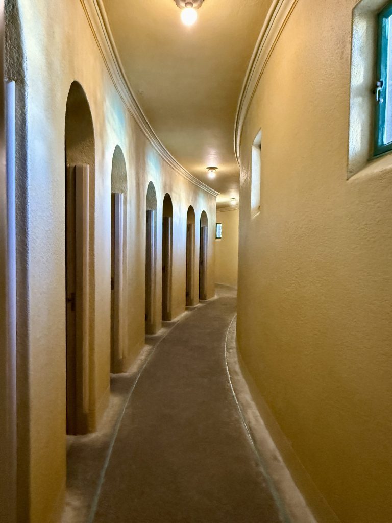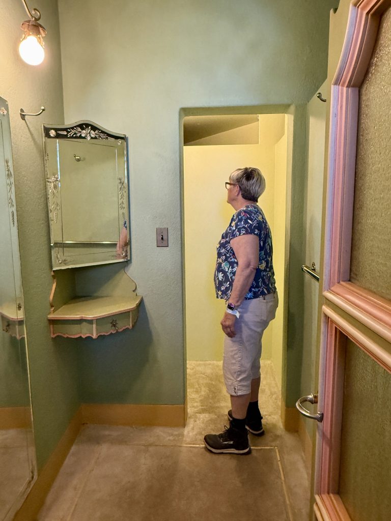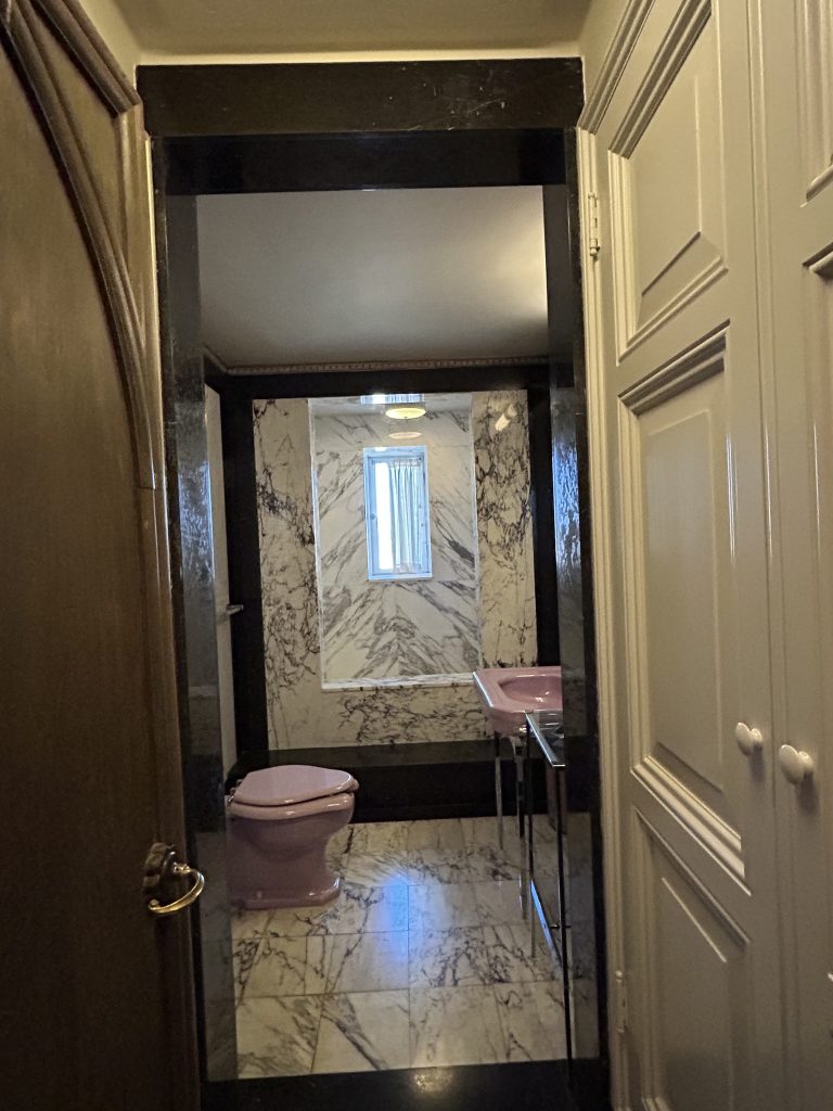 There were three guest houses between Casa Grande and the Neptune Pool. Visiting couples were accommodated with two bedrooms; because at that time, men and women, even if married, slept apart. These lodgings were more spacious that guest rooms in Casa Grande and likely were reserved for the more prominent guests. Guests that included friends and family, but also a host of movie stars, well-to-do businessmen, politicians, and world leaders. We walked up the west side of Casa del Mar, the largest of the three at 5,350 SF and toured inside the other two: Casa del Monte at 2,550 SF and Casa del Sol at 3,620 SF.