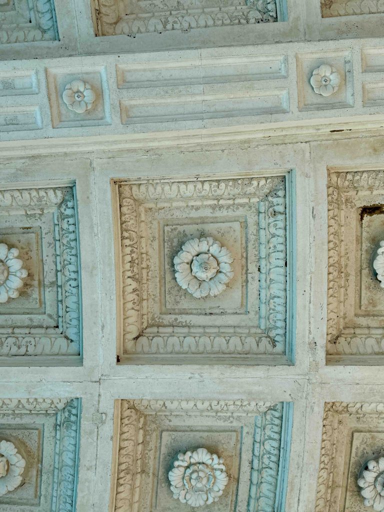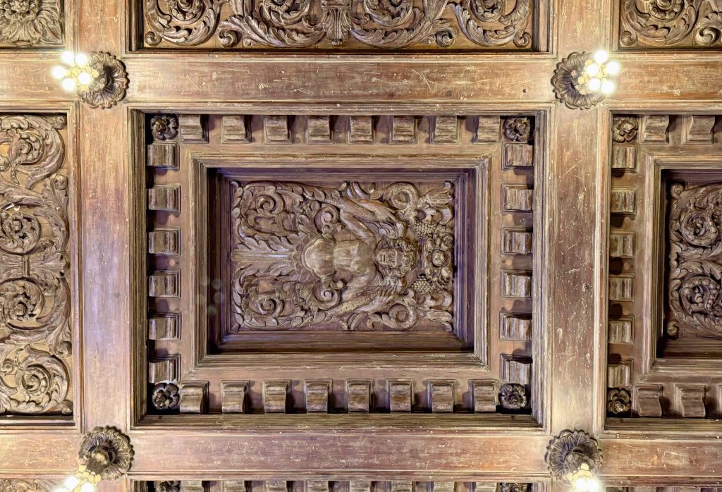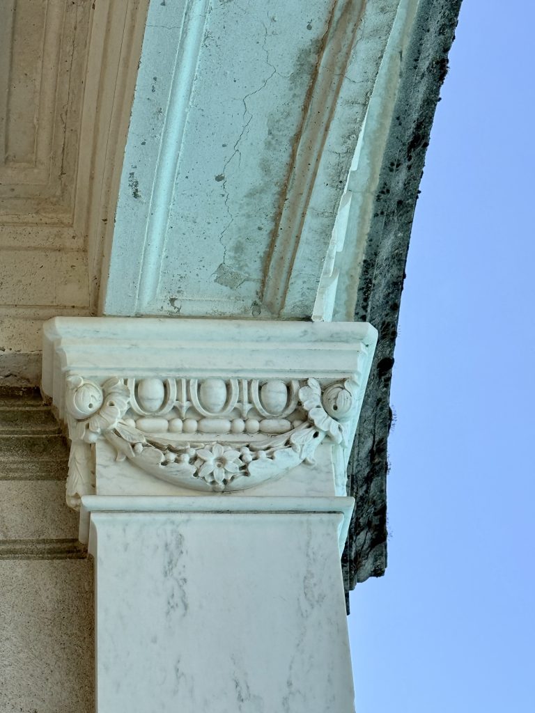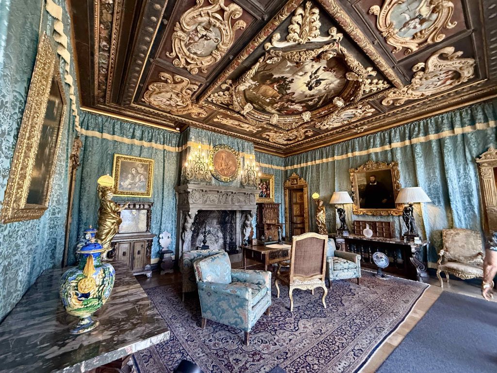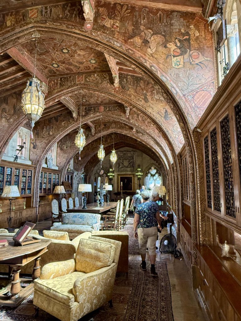 Silly us. The library was unmistakable at 80 feet long, held over 4,000 books, and displayed 150 Greek vases among many other interesting details, such as hand-painted wood trim.