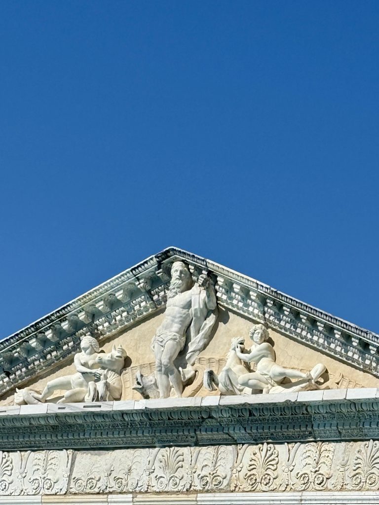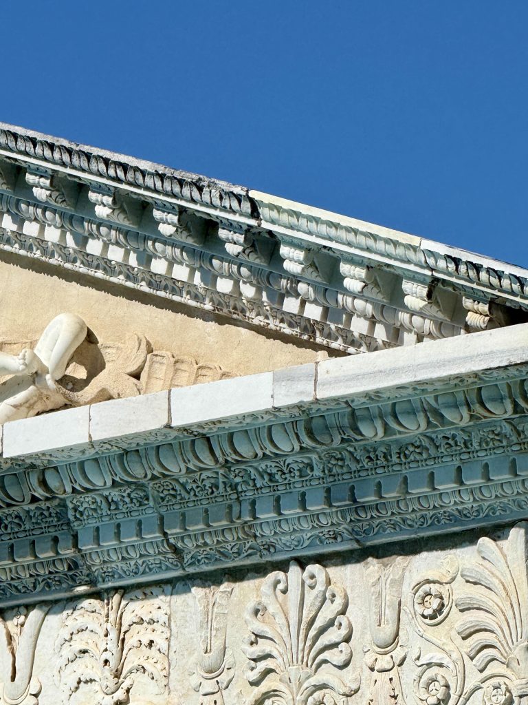 We next visited the bathhouse located between the Neptune Pool and the three guest houses. Definitely a step back to an earlier time and culture. Can you picture both men and women wandering around in long one-piece swimsuits with broad horizontal stripes?