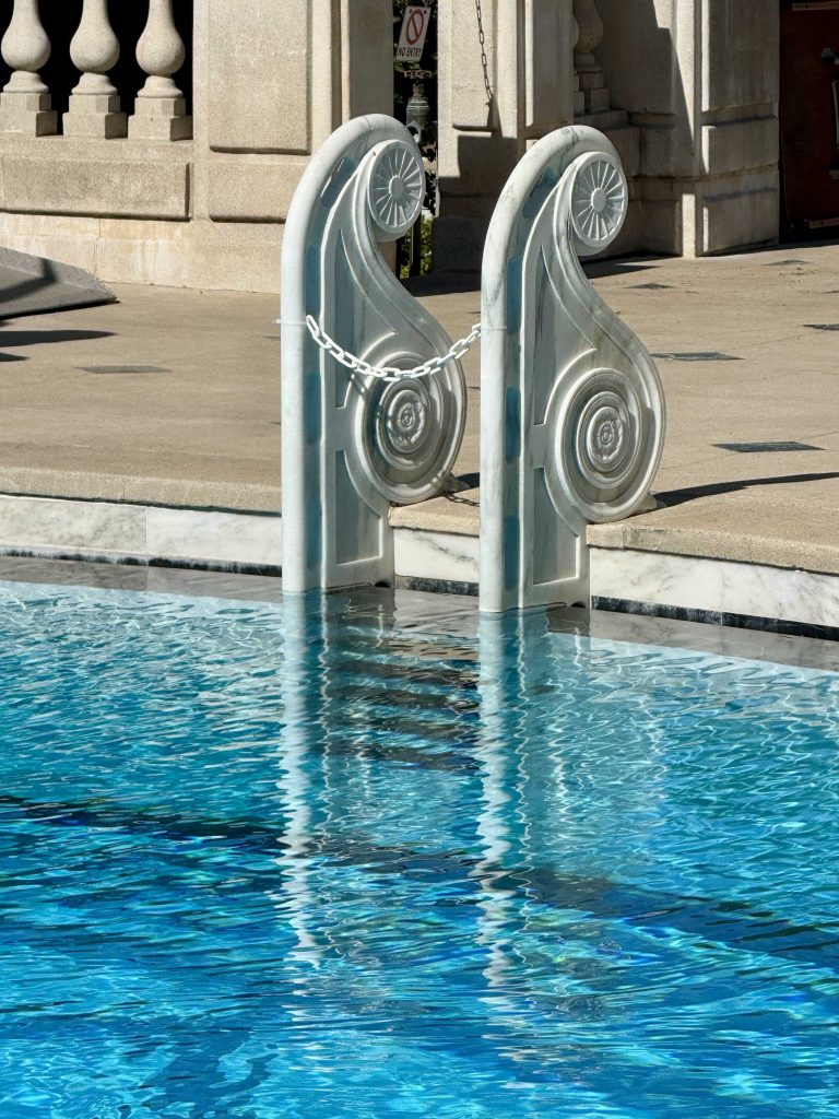 Going forward, I’ve included for each location visited, several overall area or room shots followed by photos of details that interested us. The types of details were landscaping, art pieces, furnishings, carpets, ceilings, and textures. Here were the detail photos for the Neptune Pool.