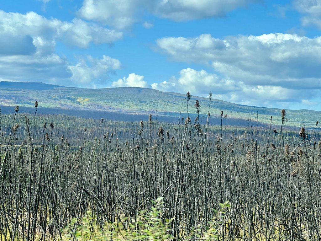 In June, when we were previously in Whitehorse on our way north, 45 miles of the Yukon Highway had been closed from June through August from Stewart to Pelling Crossing, YK. Two wildfires had caused the closure. Combined, the Wrong Lake and Willow Creek fires had burned 18,719 acres. We drove past the scars.