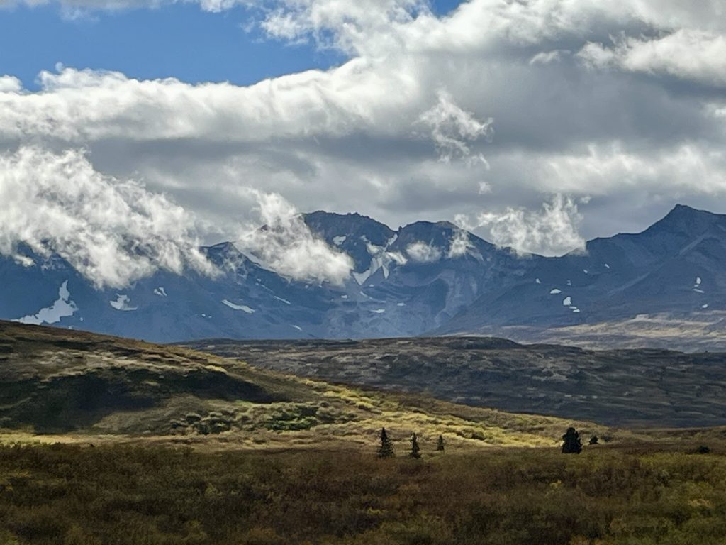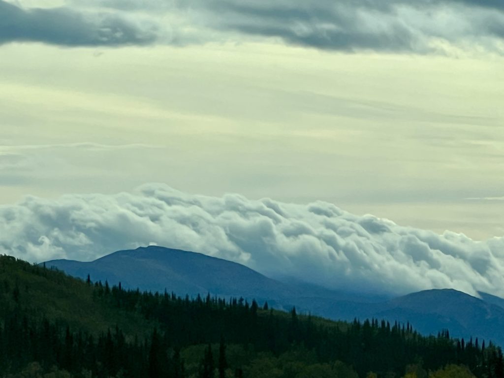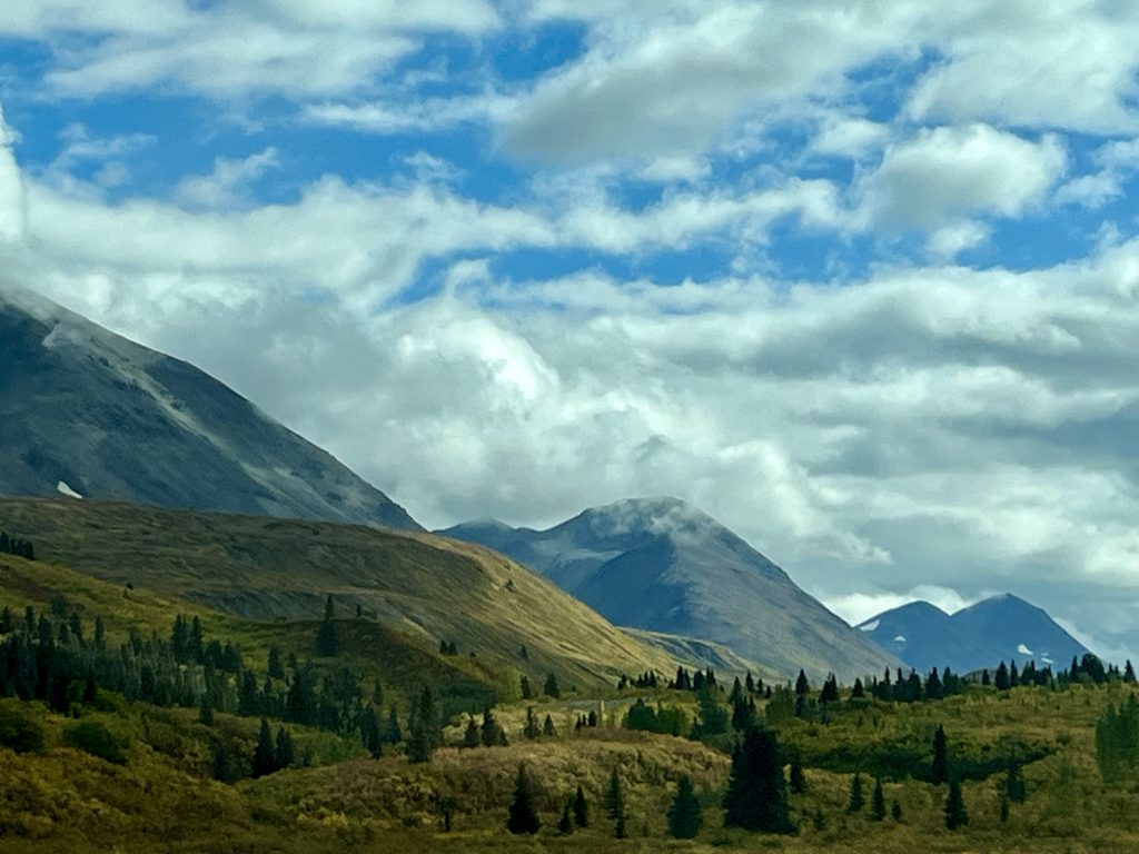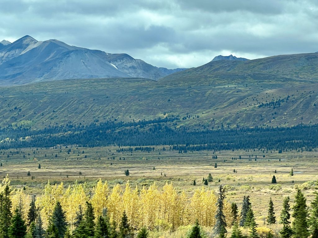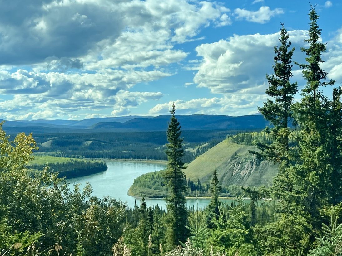 It was 222 miles to Carmacks. Most of the roadway passed through thick boreal forests carpeting the rolling hills, mountains, and Yukon River Valley. The weather was partly sunny, which made for some great pictures. We also enjoyed seeing a little autumn color in the leaves on the deciduous trees.